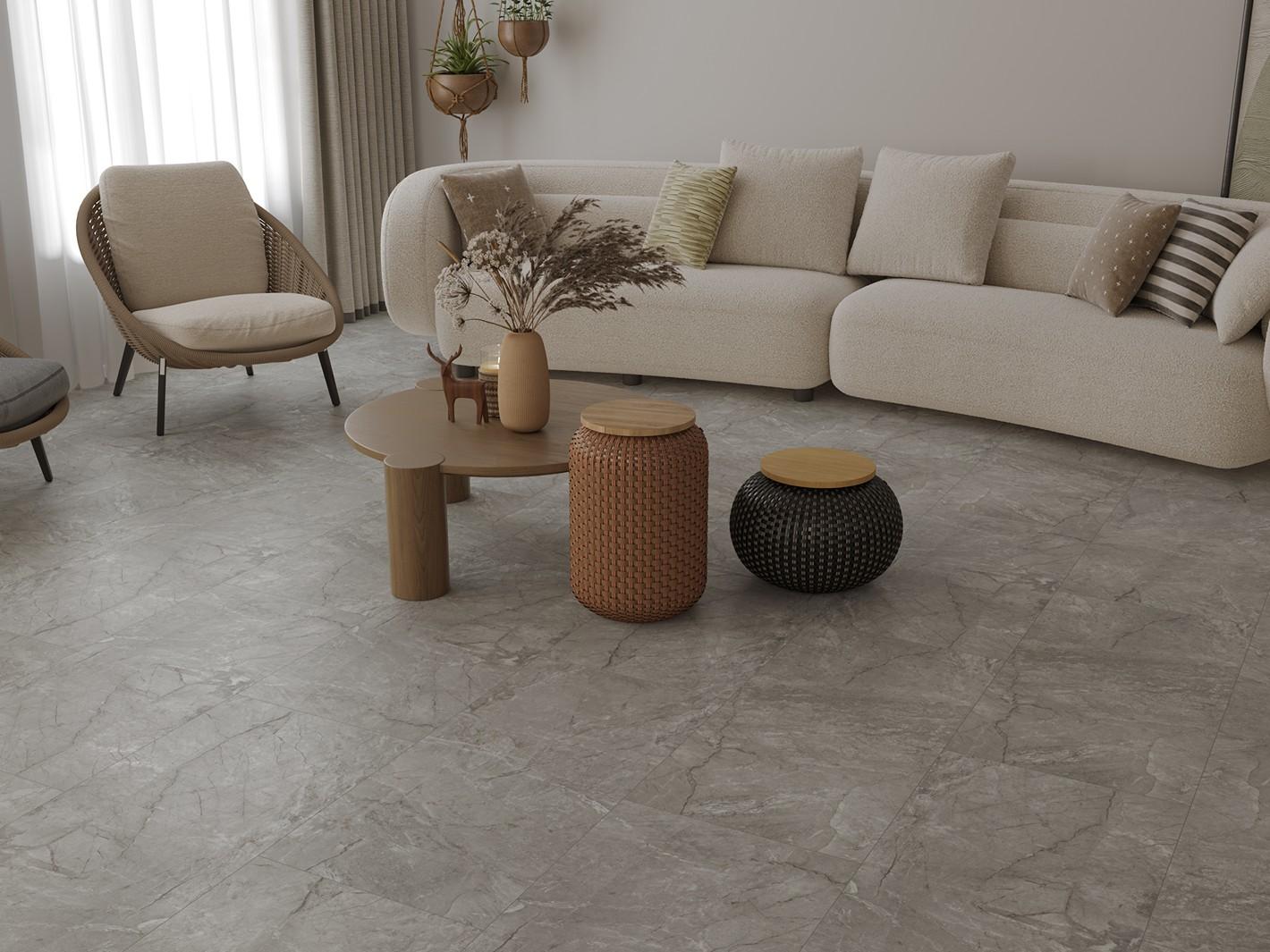 Выбирая коллекцию Stone premium LVT для своего интерьера, вы получаете все лучшее сразу – высокое визуальное исполнение, удобный широкий формат под керамогранит, легкость монтажа и долговечность материалов.