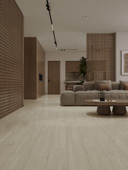 Напольное покрытие «Сонома» выполнено в светло-сером цвете с бежевым оттенком. Такое цветовое решение создает ощущение тепла и домашнего уюта, делает помещение более просторным и светлым. Текстура дерева акцентирует внимание на натуральности и экологичности материалов, что делает этот ламинат отличным решением для скандинавского и эко-стилей. Светлые оттенки натурального дерева подойдут к большинству современных интерьерных решений.