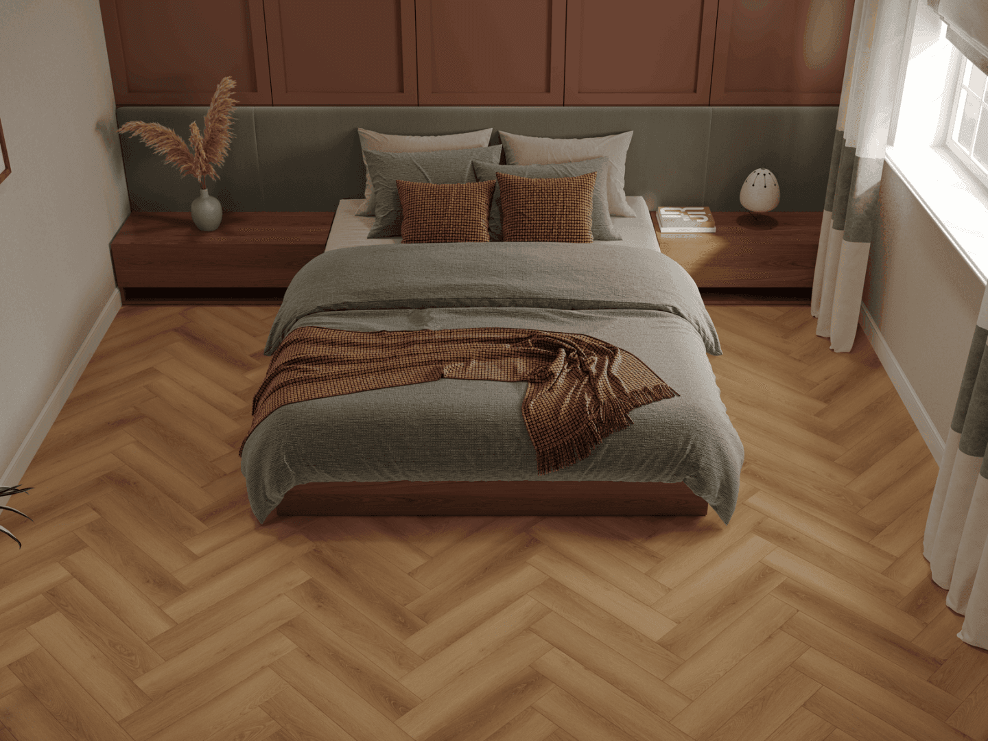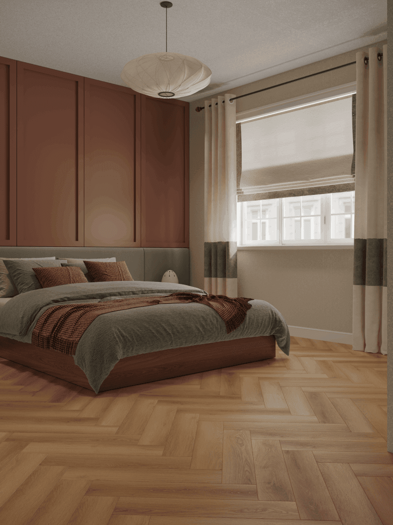 NORLAND PARQUET S 1055-7 Orel очаровывает своей палитрой мягких песочных и теплых коричневых оттенков, дарящих помещению ощущение уюта и спокойствия. Натуральный рисунок древесины усиливается полуматовой поверхностью, подчеркивающей уникальность каждого элемента. Аккуратное тиснение обеспечивает идеальное совмещение деталей, создавая эффект цельного деревянного покрытия.