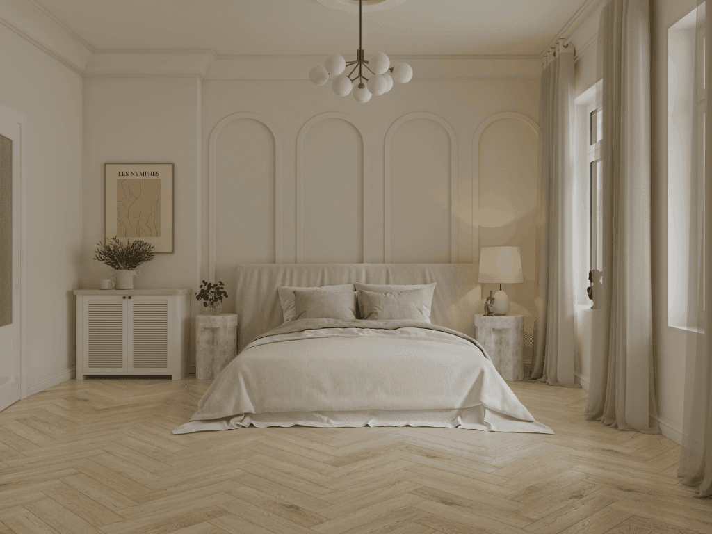 NORLAND PARQUET S 1055-17 Buton представляет сочетание светлого бежевого, серого и легкого коричневого оттенков. Легкая полуматовая фактура добавляет дополнительную глубину и элегантность, одновременно подчеркивая оригинальные детали природных волокон. Выразительное тиснение аккуратно передает фактуру древесной породы, становясь украшением вашего пространства.