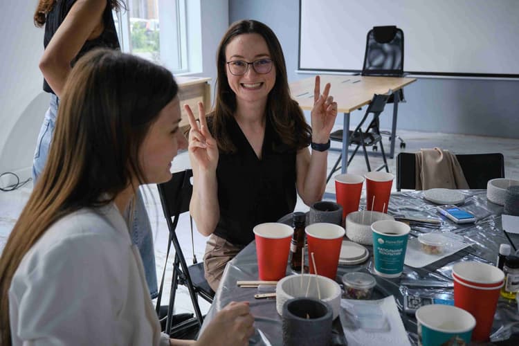 Каждый дизайнер смог самостоятельно выбрать два любимых аромата и создать две абсолютно уникальные свечи, отражающие его индивидуальный стиль и предпочтения. Процесс создания свечей сопровождался прослушиванием музыки и непринужденным общением. Участники обменивались опытом, делились идеями и вдохновлялись друг другом. В перерывах между творческими этапами гостей угощали легкими закусками и напитками.